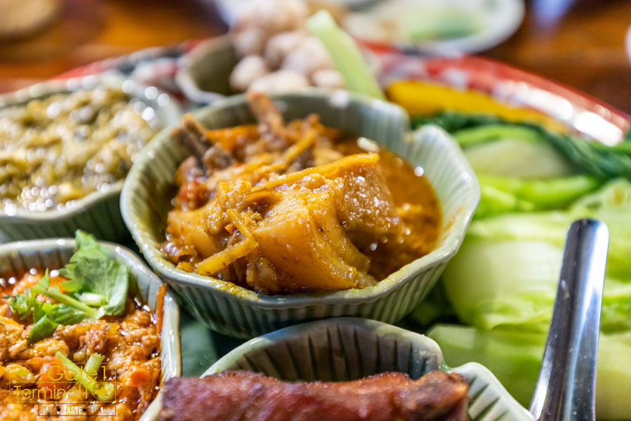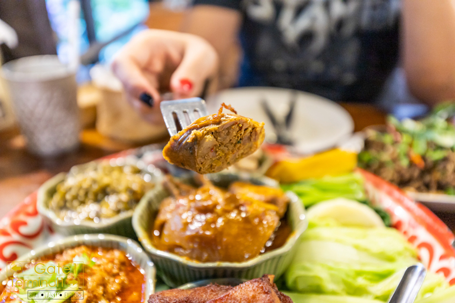 ออเดิฟเมือง ภายในเซต มีน้ำพริกหนุ่ม น้ำพริกอ่อง แกงฮังเล หมูทอด ไส้อั่ว แคปหมู และผักต้ม ซึ่งน้ำพริก รสชาติไม่เผ็ดเท่าไหร่ ทานได้เรื่อยๆ ส่วนผักต้มโดยเฉพาะฟักทอง หวานมากๆ