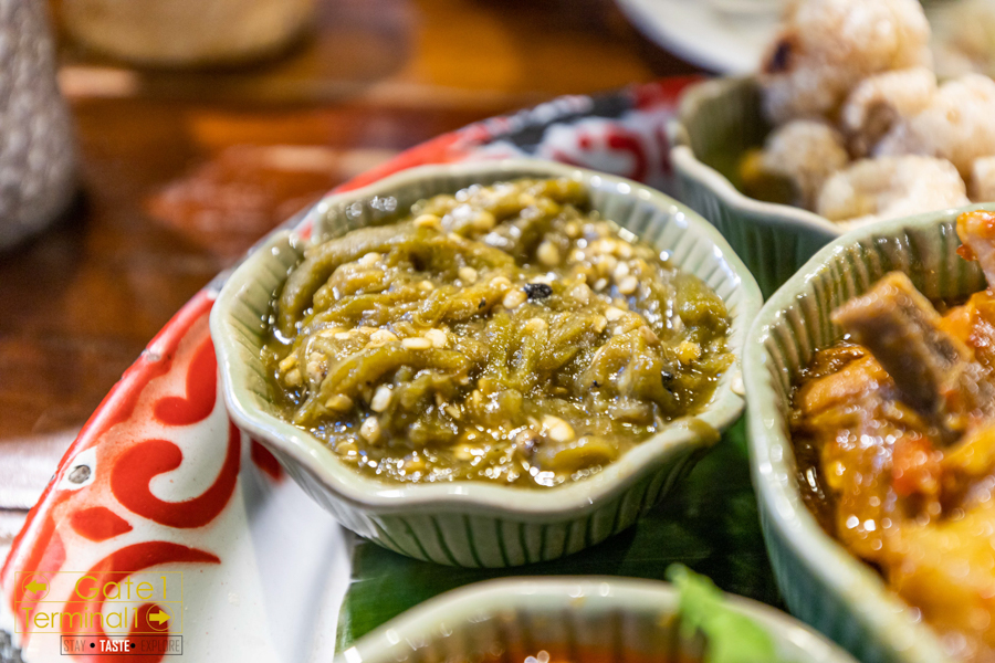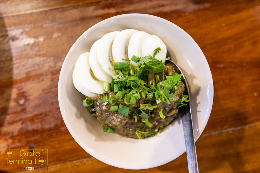 ตำมะเขือ ตอนแรกเราว่าหน้าตาเหมือนน้ำพริกหนุ่ม รสชาติไม่เผ็ด แต่ทานคู่กับไข่ต้มเข้ากันได้ดี