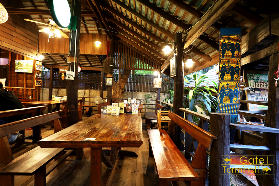 เดินเข้ามาในร้าน บรรยากาศเป็นแบบไม้ๆ ได้อารมณ์ชาวเหนือแท้ๆ ซึ่งร้านเปิด 5 โมง เรามา 5 โมง นิดๆ มีโต๊ะมานั่งแล้วเกือบ 10 โต๊ะ