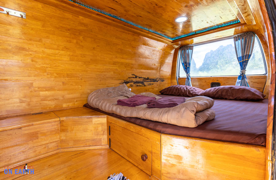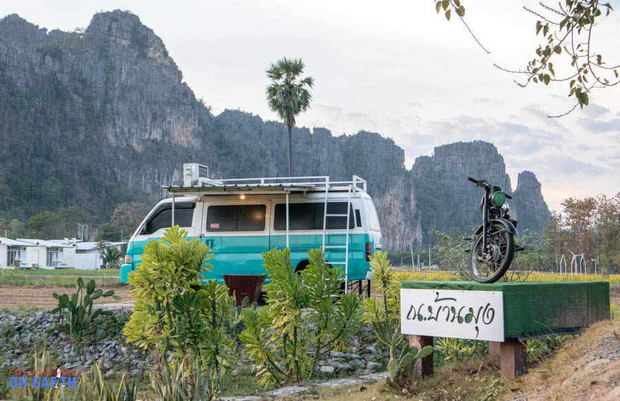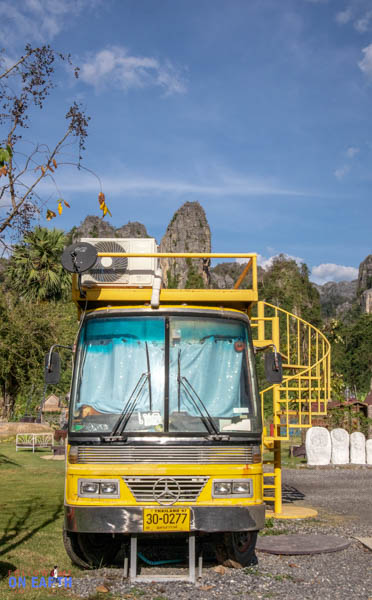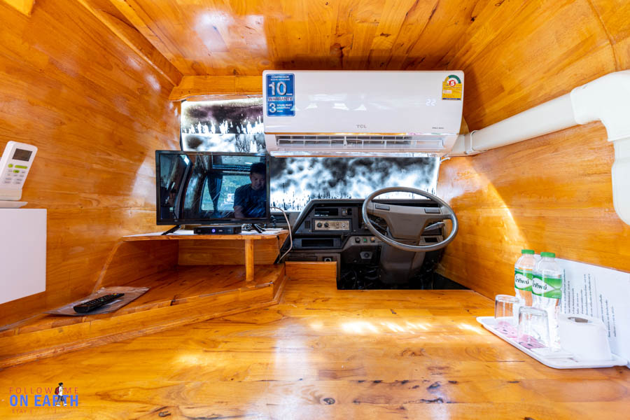 คันนี้ก็เป็นห้องพัก เป็นรถบัสเล็ก แต่อยู่ด้านหน้า แต่ถ้าเป็นช่วงเช้า หรือบ่ายๆ อาจจะไม่ค่อยส่วนตัวเท่าไหร่ เพราะคนจะมาถ่ายรูปกันค่อนข้างเยอะ แต่ตรงหน้าประตูก็จะมีป้ายบอกไว้ให้ว่ามีลูกค้า