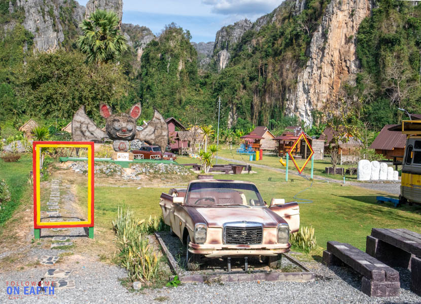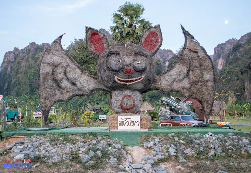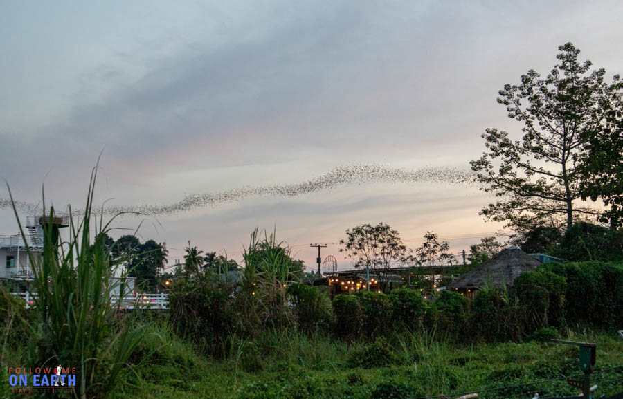 เดินเล่น ถ่ายรูปไปเรื่อยๆ เวลาประมาณ 6 โมงเย็น ที่เป็นช่วงเวลาที่รอคอย จะมีค้างคาวหน้ายักษ์เล็กจมูกปุ่ม บินออกมาจากถ้ำบ้างมุง เป็นสายทางยาว เป็นภาพที่หาดูยากมาก