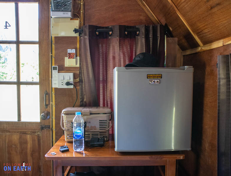 ภายในก็มีแอร์ มีทีวี ส่วนคนตัวสูงๆ ไม่แนะนำห้องนี้นะ เพราะเตียงนอนค่อนข้างสั้น แต่แอร์เย็นมากๆ