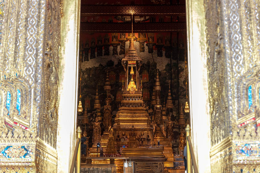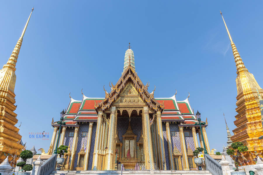 พระอุโบสถ เป็นสถานที่ประดิษฐานพระพุทธมหามณีรัตนปฏิมากร หรือ พระแก้วมรกต ซึ่งแกะสลักจากหยกอ่อนเนไฟรต์สีเขียวดั่งมรกต เป็นพระพุทธรูปสกุลศิลปะก่อนเชียงแสนถึงศิลปะเชียงแสน หลักฐานที่ตรงกันระบุว่าพบครั้งแรก ประดิษฐานอยู่ในเจดีย์วัดป่าญะ ตำบลเวียง เมืองเชียงราย