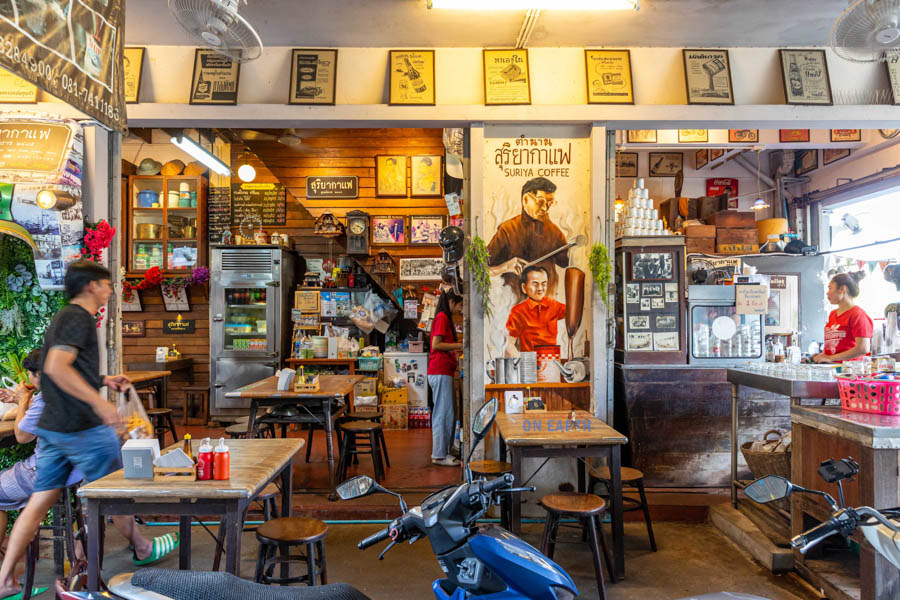 จากร้านขนมผักกาดเดินตรงเข้าตลาดวัดกลางซึ่งเป็นตลาดซื้อขาย “พลู” ใหญ่ที่สุดในกรุงเทพฯมาก่อน ปัจจุบันกลายเป็นตลาดสดที่คึกคักมากๆ ฝั่งติดคลองมีร้านกาแฟบรรยากาศดีอยู่ร้านหนึ่งชื่อ “สุริยากาแฟ”