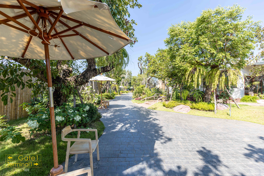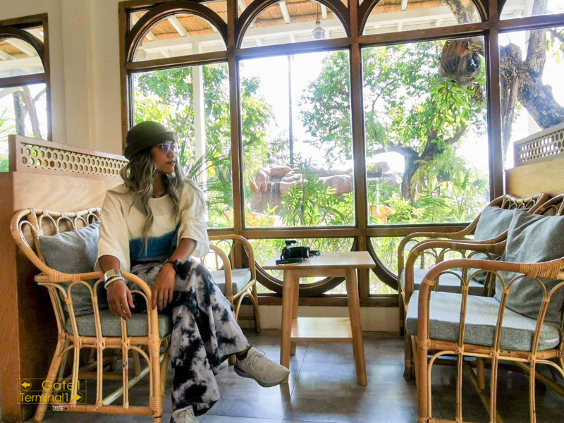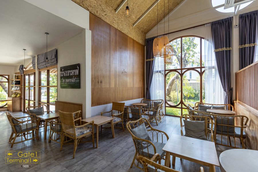จอดรถด้านหน้าคาเฟ่ พอเดินเข้าไปภายในบริเวณคาเฟ่ เหมือนหลุดไปอยู่อีกเมืองนึงเลย คาเฟ่แบบนี้ ส่วนใหญ่จะเห็นในเมืองใหญ่ หรือ ในกรุงเทพฯ ซะมากกว่า พื้นที่ภายในก็เน้นสีเขียว น้ำตาล ขาว การตกแต่งร้านน่ารักสไตล์มินิมอล มีน้ำตกน้อยๆ ที่ตกแต่งทำให้รู้สึกเย็นร่มรื่น หายร้อนเลยทีเดียว