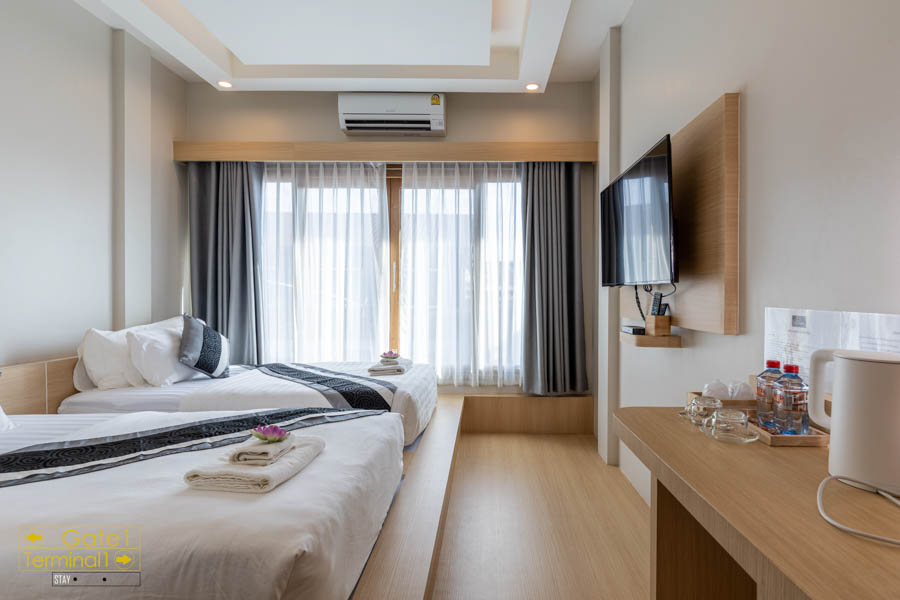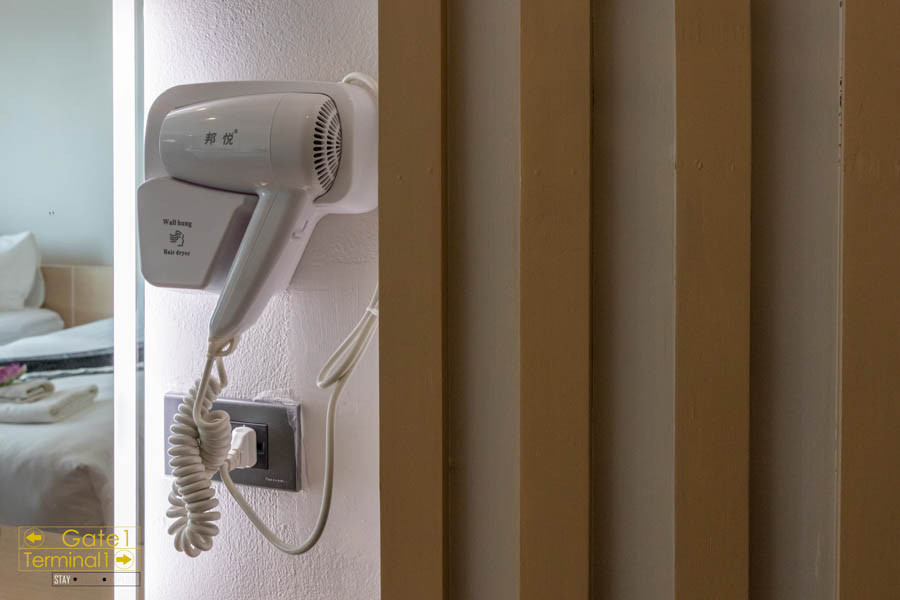 เครื่องใช้ภายในห้องก็ครบครัน มีน้ำเปล่าให้ 2 ขวด/วัน, ไดร์เป่าผม, และตู้เสื้อผ้าแบบเปิดโล่ง