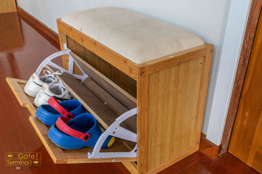 ได้กุญแจแล้ว เราขึ้นห้องกันเลย ห้องเราอยู่ชั้น 2 (B2) อ้อ! แล้วก่อนเข้าตึก ต้องถอดรองเท้าและถือขึ้นไป ซึ่งหน้าห้องก็จะมีตู้ใส่รองเท้าให้