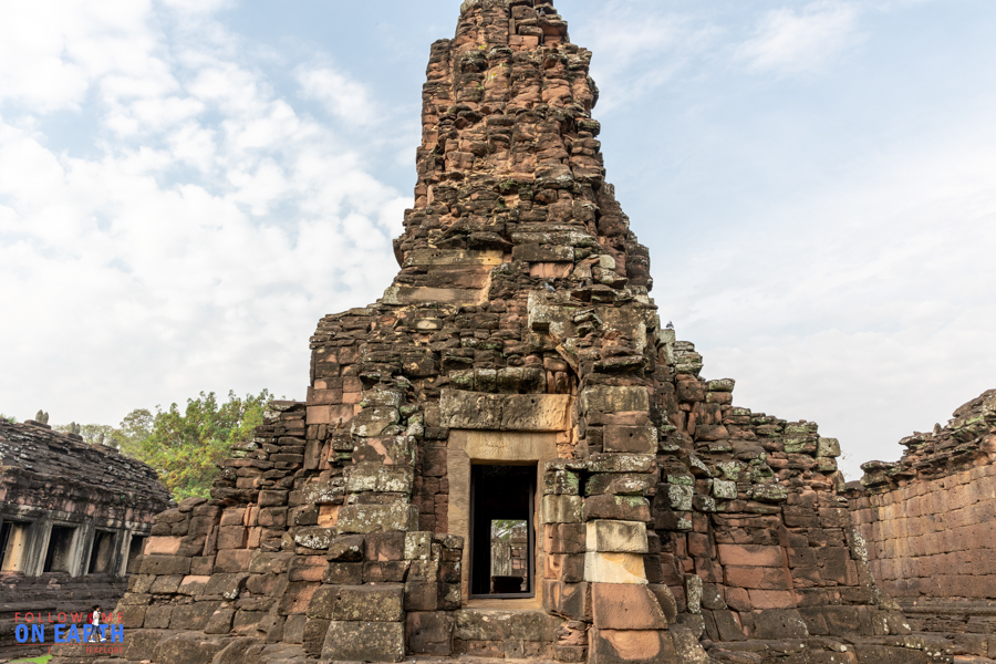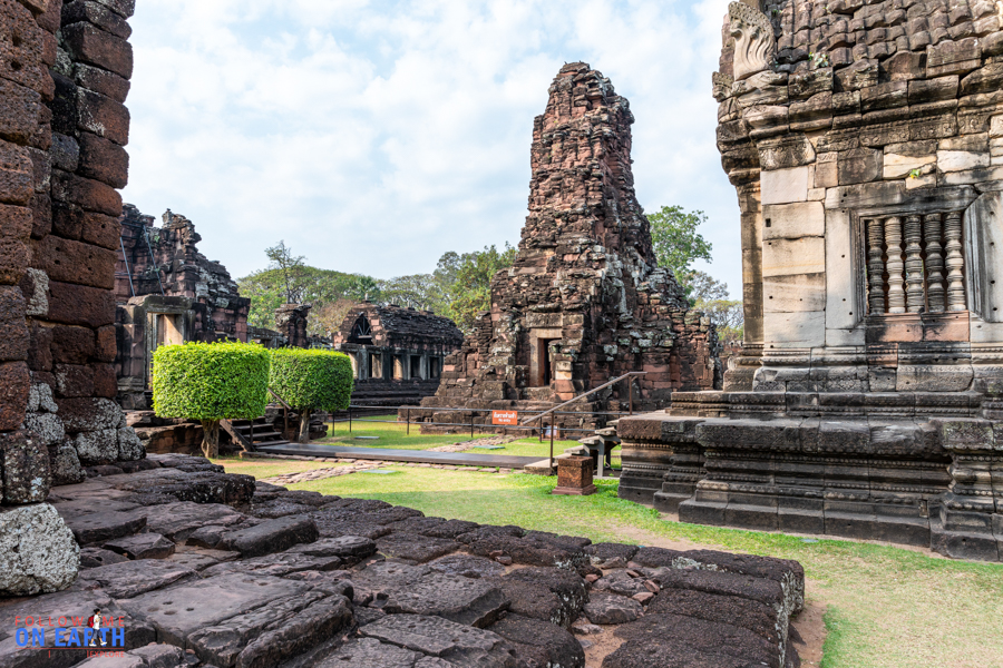 ปรางค์หินแดง ก่อสร้างด้วยหินทรายสีแดง ตั้งอยู่บนฐานสีเหลี่ยมจตุรัสย่อมุม ประตูทางเข้าก่อเป็นมุขยื่นออกไปทั้ง 4 ด้าน ส่วนฐานต่อเนื่องกับหอพราหมณ์