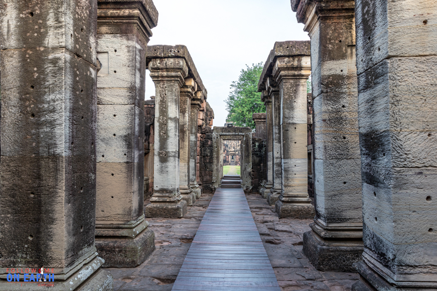 ชาลาทางเดิน เป็นทางเชื่อมต่อระหว่างซุ้มประตูทางเข้าด้านทิศใต้และระเบียงคด ลักษณะยกพื้นเป็นขอบทางเดินขึ้นลงได้โดยรอบ จึงทำให้เกิดช่องว่างเป็นรูปสีเหลี่ยมผืนผ้า จำนวน 4 ช่อง จึงทำให้เป็นแผนผังรูปกากบาท