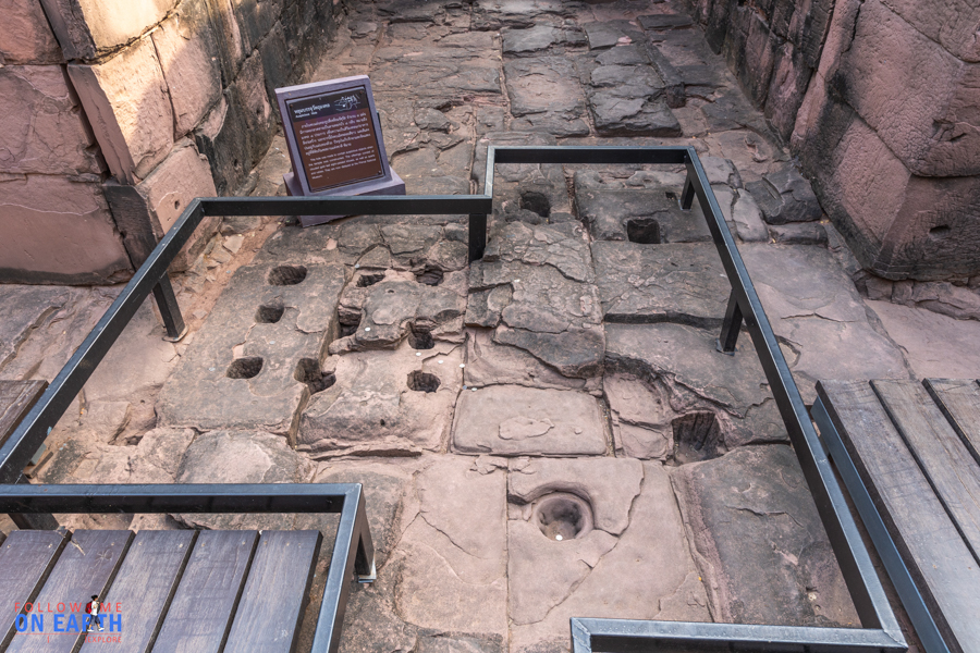 พลับพลา ภายในลานชั้นในด้านตะวันออก มีฐานอาคารก่อสร้างด้วยหินทรายสีแดงเป็นรูปสี่เหลี่ยมจตุรัสย่อมุม พื้นที่ตรงกลางเป็นช่องสี่เหลี่ยมและมีหลุมขนาดใหญ่ สันนิษฐานว่าอาคารหลังนี้ใช้เป็นสถานที่ประกอบพิธีกรรม