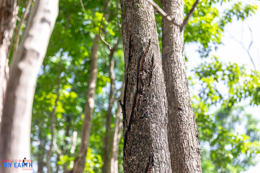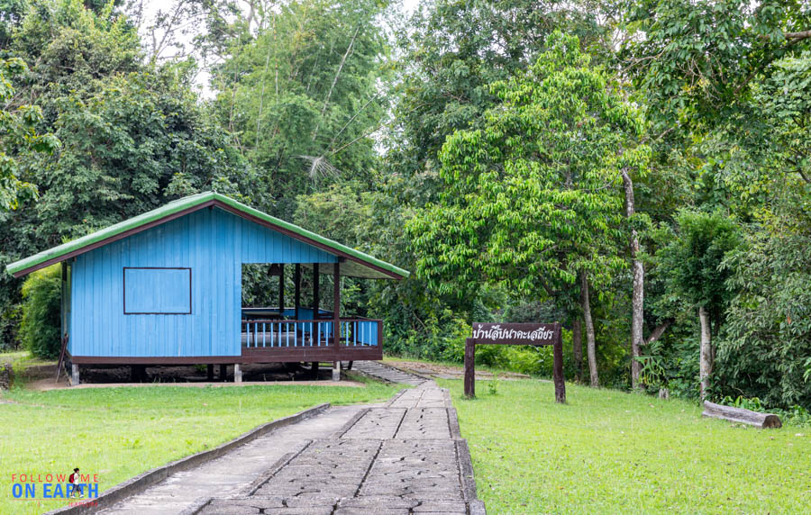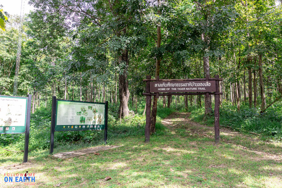 พอออกจากบ้านหัวหน้าสืบ เราก็ไปเดินศึกษาธรรมชาติบ้านของเสือ ระยะทางประมาณ 800 เมตร โดยมีเจ้าหน้าที่พาเดินและอธิบายตลอดเส้นทาง