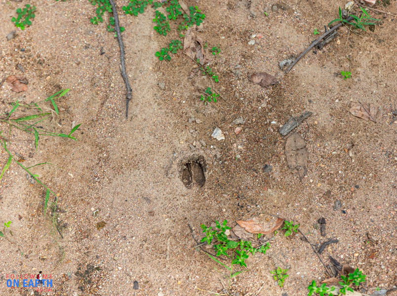 และระหว่างทาง พี่เจ้าหน้าที่ก็คอยชี้รอยเท้าสัตว์ต่างๆให้ดูว่า "รอยเท้ากระทิง เพิ่งเดินผ่านไปก่อนเรามาไม่กี่นาทีนี้เอง" หรือรอยเท้าสัตว์อื่นๆ ที่เดินนำหน้าเราไปก่อนแค่ไม่กี่นาที