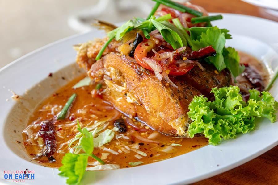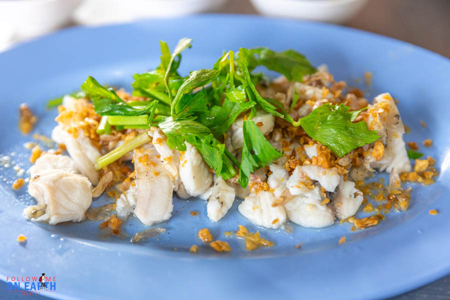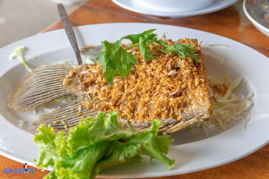 ร้านนี้ขึ้นชื่อปลาแรก ซึ่งเราก็สั่งกันมา 1 ตัว ซึ่งสามารถทำได้ 2 เมนู ส่วนหางเอามาทำทอดกระเทียม เนื้อปลาสด แน่น ทอดไม่แห้งเกินไป กำลังดี กระเทียมหอมกรอบ