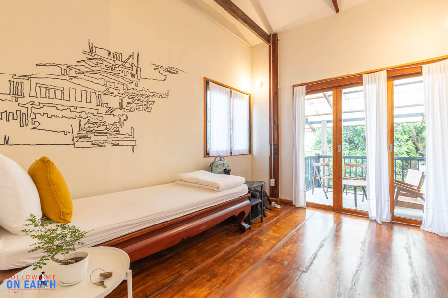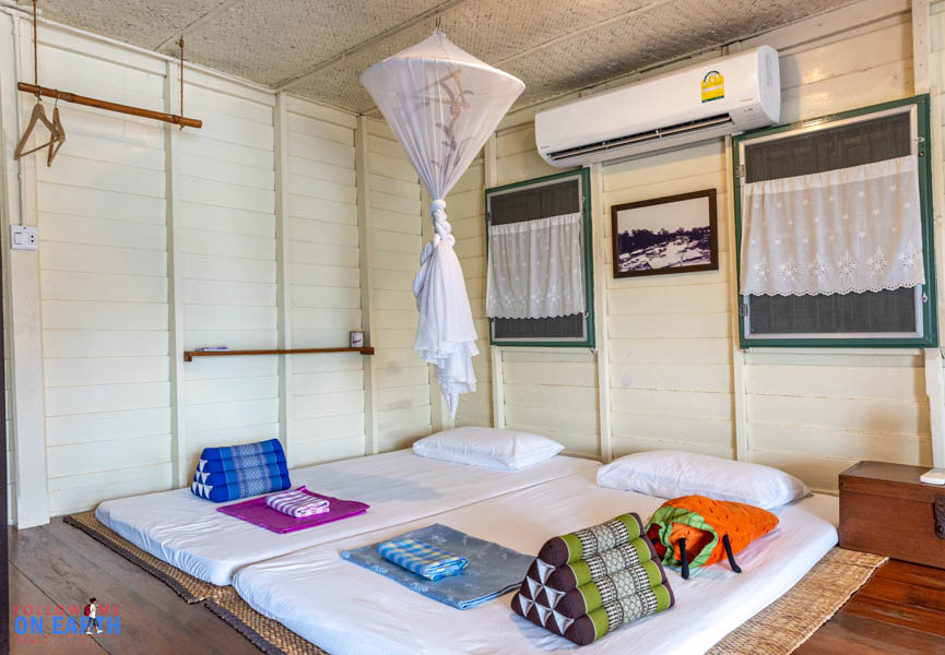 ห้องนอนมี 2 ที่ คือ ด้านนอก บริเวณโถงใหญ่ และในห้อง ขนาดเล็ก ซึ่งนอนได้ทั้งหมด 4 คน และมีผ้าขาวม้ามาให้แทนผ้าขนหนู แต่ถ้ามามากว่านั้น ทางเจ้าของบ้านก็จะจัดที่นอนให้เพิ่ม อย่างเต็มที่เพิ่มได้อีก 2 ที่