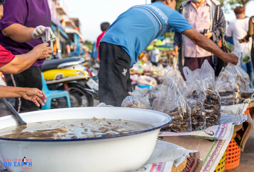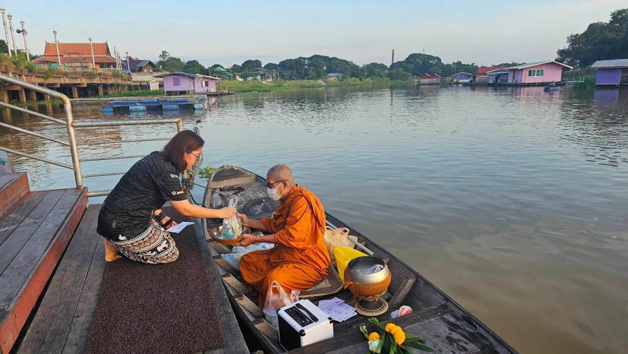 ซื้อของใส่บาตรตรงตลาด และเดินไปที่ท่าน้ำไปใส่บาตรกัน