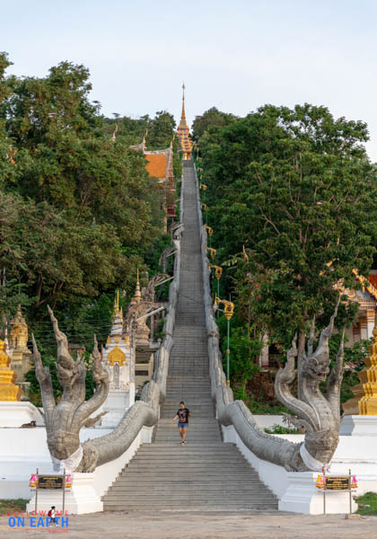 วัดนี้มีความโดดเด่นเรื่องบันไดพญานาค ที่ในวันออกพรรษาจะมีพระภิกษุเดินลงมาจากบันได 449 ขั้น จากวัดบนยอดเขา เพื่อมารับบิณฑบาตรจากประชาชนด้านล่าง