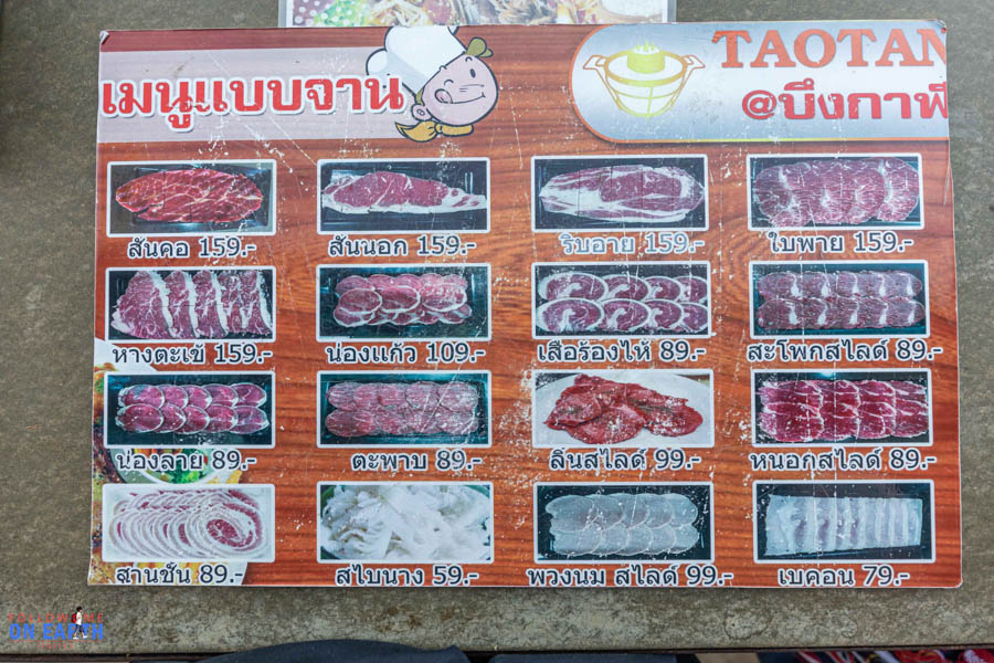 เมนูแบบชุดก็มี หรือถ้าไม่อิ่มก็จะสั่งแบบจานก็ได้ แต่ถ้าไม่ทานปิ้งย่าง ก็มีเมนูอื่นๆ เช่น อาหารตามสั่ง ยำ อาหารอีสาน และของทอด หลายอย่างมาก