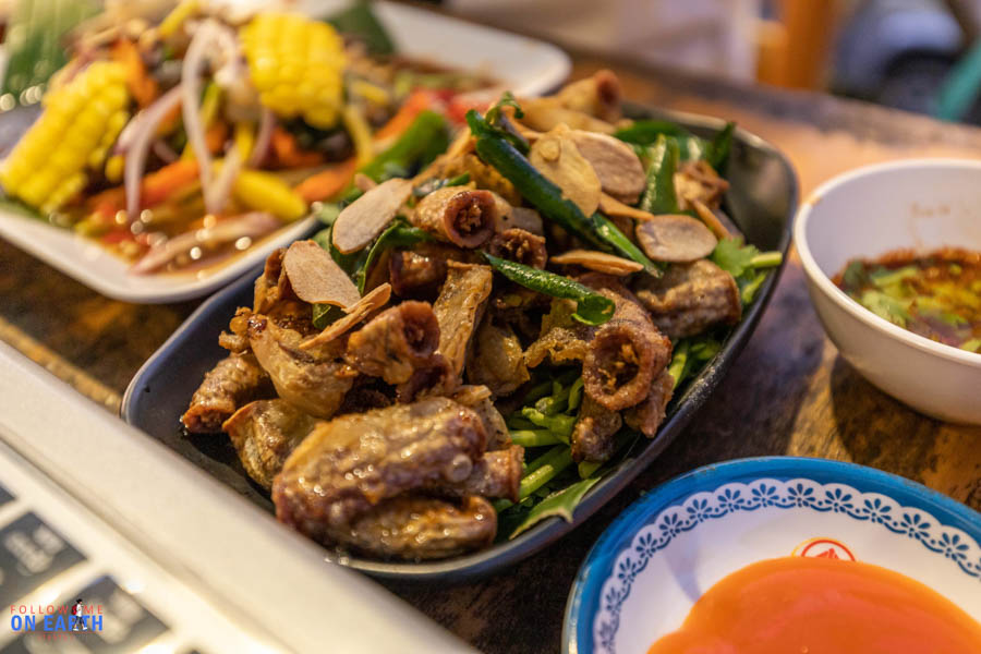 ก่อนแจ่วฮ้อนจะมา เราสั่งไส้ทอดมาทานกันก่อน พอมาถึงต้องรีบทานก่อนเลย เพราะปล่อยไว้นานๆ มันจะแข็ง บริหารเหงือกเยอะหน่อย