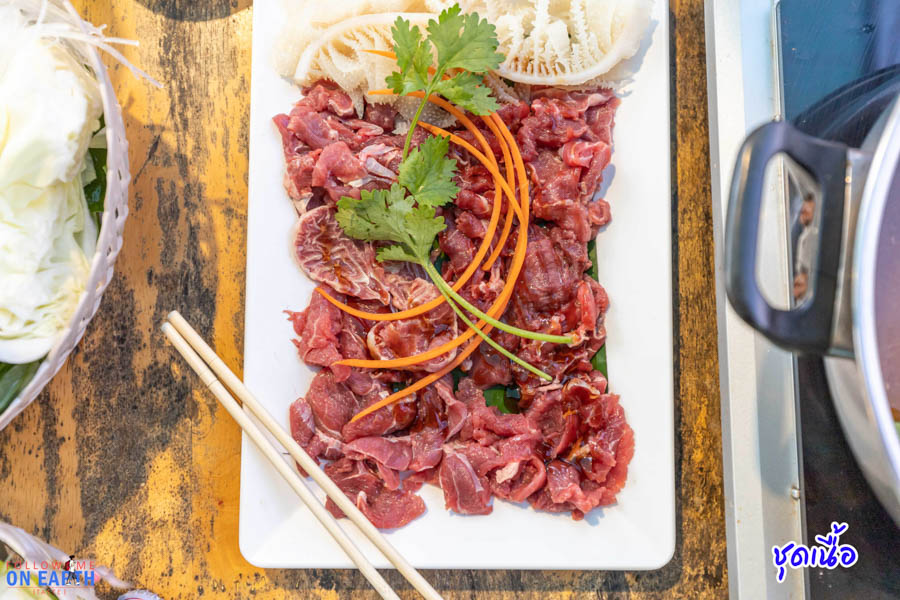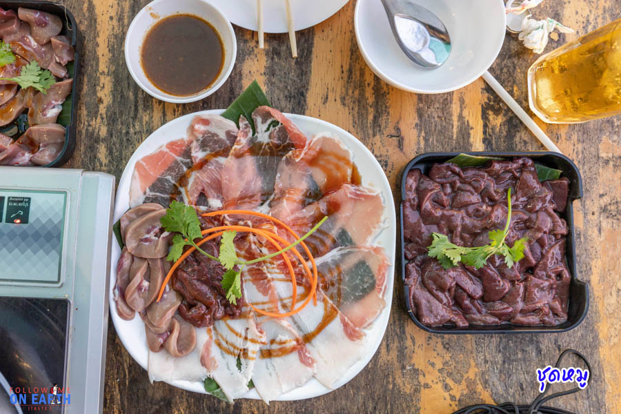 เราสั่งมา 2 ชุด คือ ชุดเนื้อ และชุดหมู และสั่งตับเพิ่มมาอีก 1 จาน