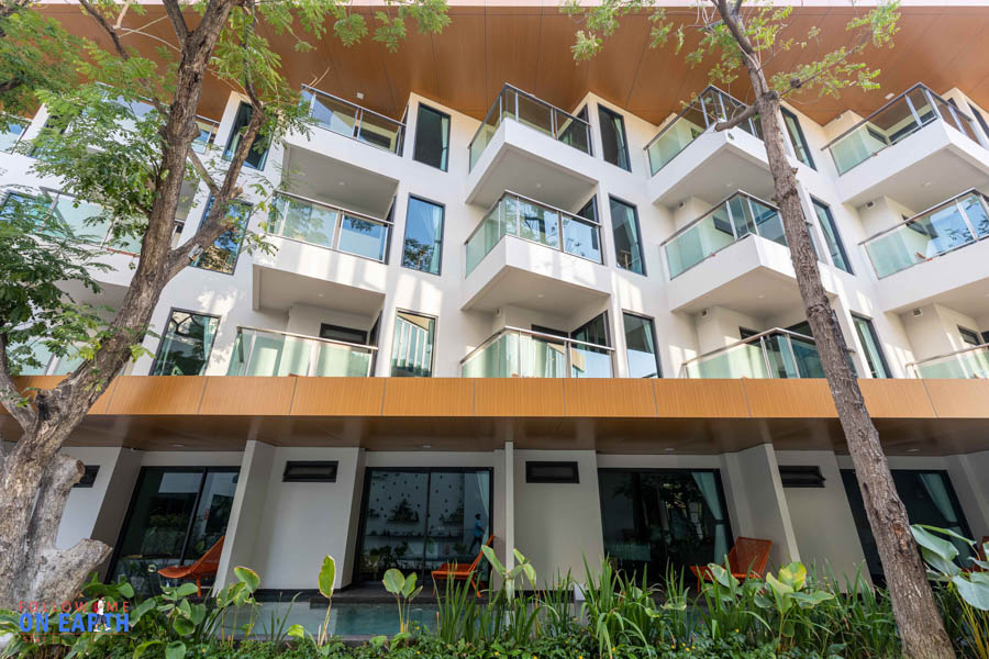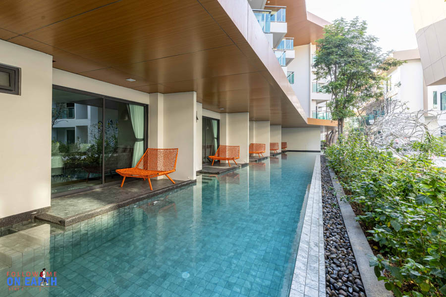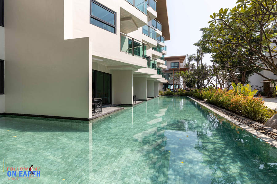 อาคารห้องพักจะแบ่งฝั่งซ้ายขวา ทั้ง 2 ฝั่งมีห้องที่เป็น pool access แต่ฝั่งหนึ่งสระจะเล็กกว่า ถ้าชอบเล่นน้ำก็จองห้อง pool access ชั้นล่าง แต่ถ้าชอบวิวทะเลก็จองห้องชั้นบน