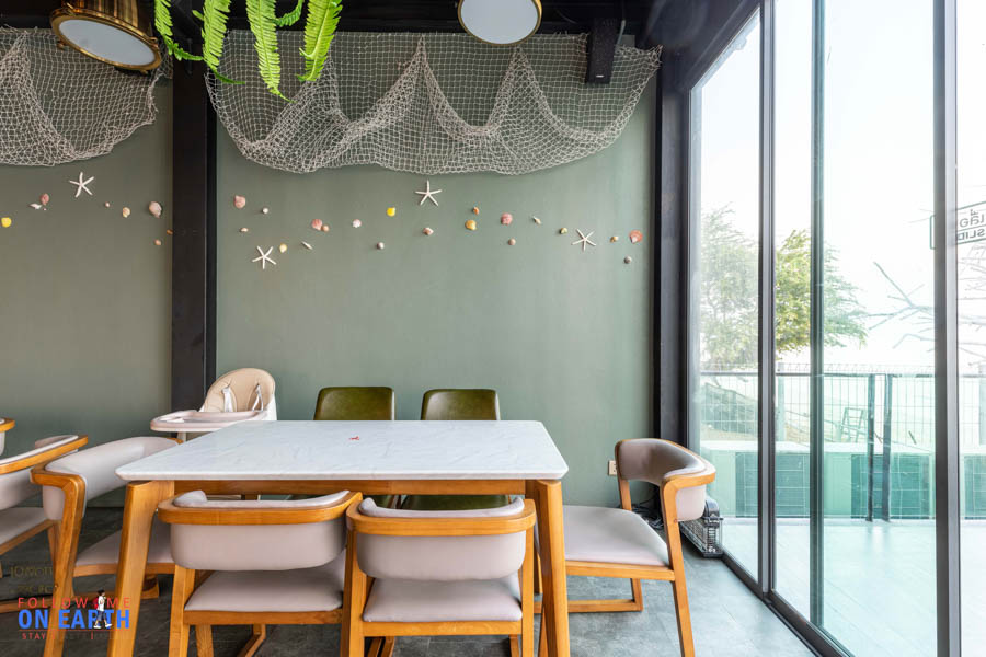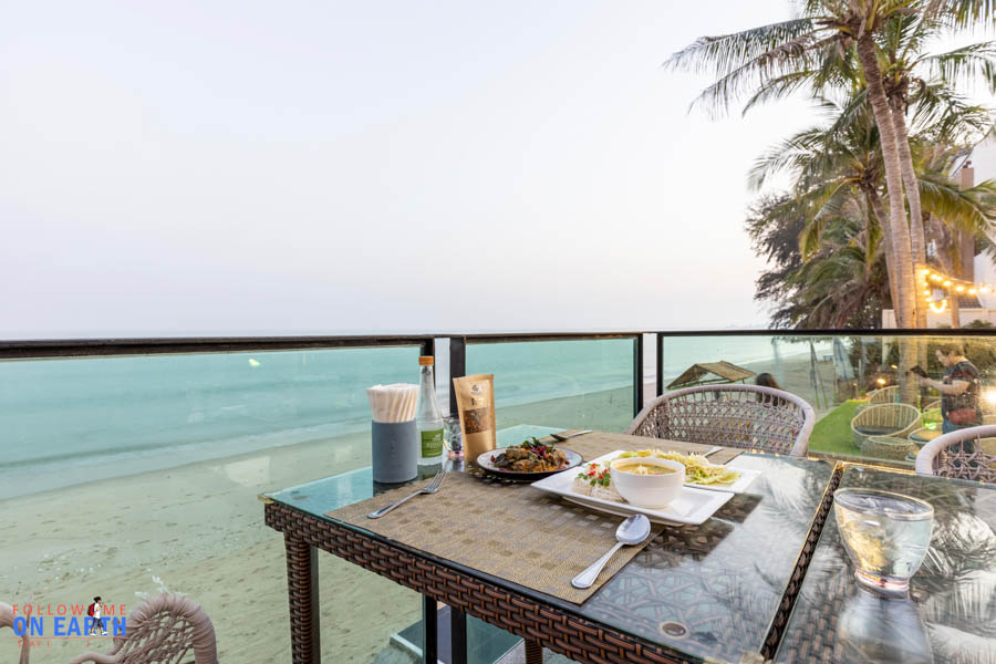 เล่นน้ำจนตกเย็นก็มาหาอะไรทานกัน ห้องอาหารของโรงแรมใหญ่สามารถรองรับคนเยอะๆ ที่นั่งสำหรับมื้อเย็น แนะนำก็เป็นด้านนอกริมกระจกเห็นวิวทะเลชัดเจน