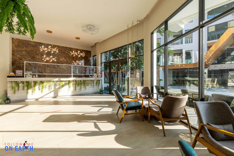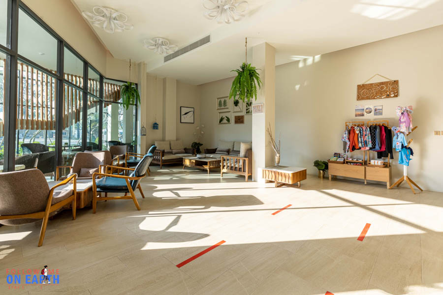 บริเวณ Reception กว้างขวาง โล่ง โปร่ง แสงแดดส่องเข้าได้ และอีกมุมนึงก็มีขายของที่ระลึกด้วย