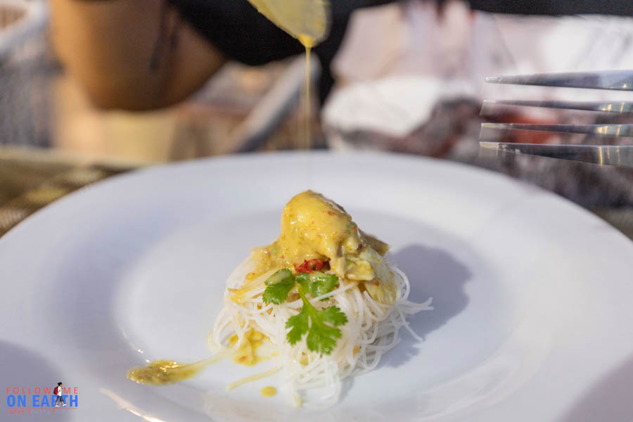 เริ่มด้วยแกงปู รสชาติใช้ได้เลยครับแกงปูมีเนื้อปูเป็นก้อนๆเลยไม่ใช่แค่เศษๆ รสชาติจัดจ้านมาก ทานคู่กับเส้นหมี่ เข้ากันได้ดี