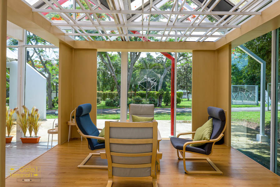ตัวคาเฟ่จะใช้กระจกเป็นส่วนประกอบของตัวอาคาร ซึ่งเวลาเข้าไปจะทำให้รู้สึกโล่ง โปร่ง และดูสว่างมากๆ