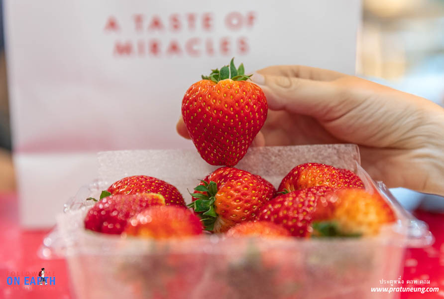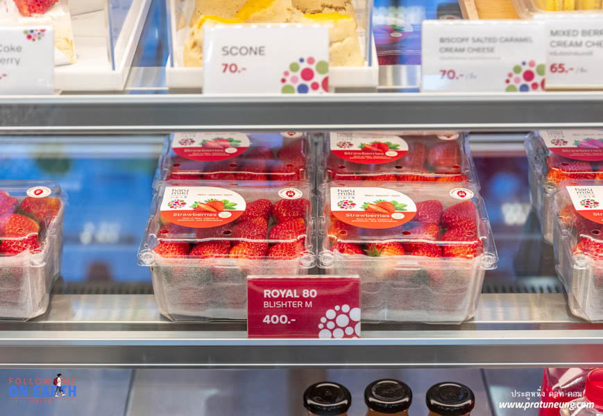 แต่สิ่งที่เราตั้งใจมาที่นี่ คือ สตอเบอร์รี่ ซึ่งมีหลายสายพันธ์ แต่วันที่เราไป มีแต่พันธุ์80 และแบ่งเป็นไซส์ S, M, L ราคาแตกต่างกันไป
