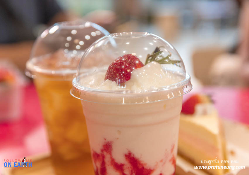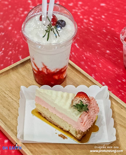 เราเดินชมนิทรรศการดอกไม้ของทางปตท. เสร็จก็มานั่งทานขนม เครื่องดื่มกัน ซึ่งเมนูส่วนใหญ่จะเป็นเมนูที่ทำมาจากสตอเบอร์รี่ในฟาร์ม