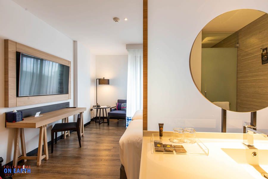 ขนาดห้องค่อนข้างกว้าง ซึ่งขนาดก็จะเหมือน Novotel ทุกที่ แต่การตกแต่งจะออกแนวหรูหรากว่า