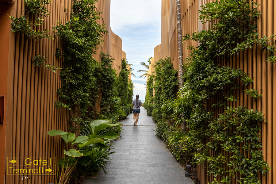 บนตึก แต่ละชั้นก็จะมีโซฟา ส่วนกลางให้นั่งรับลม ซึ่งจะตรงกับช่องทางที่เดินไปทะเล
