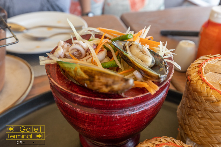 เมนูต่อไป เป็นเมนูแนะนำของร้าน ชื่อว่า "Somtam with Grilled Chicken" ง่ายๆ คือ ส้มตำไก่ย่างนั่นเอง แต่ที่ชอบคือ ส้มตำ เสริฟมาในครก ค่อนข้างแปลกตาทีเดียว