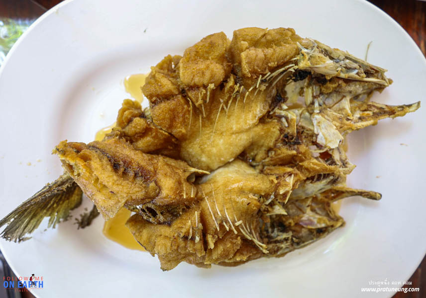 เมนูนี้ห้ามพลาด เพราะเป็นร้านแรกที่ทำเมนูนี้ขึ้นมา "ปลากะพงทอดน้ำปลา" ทอดได้กรอบนอก นุ่มใน และน้ำปลาที่ราดมา